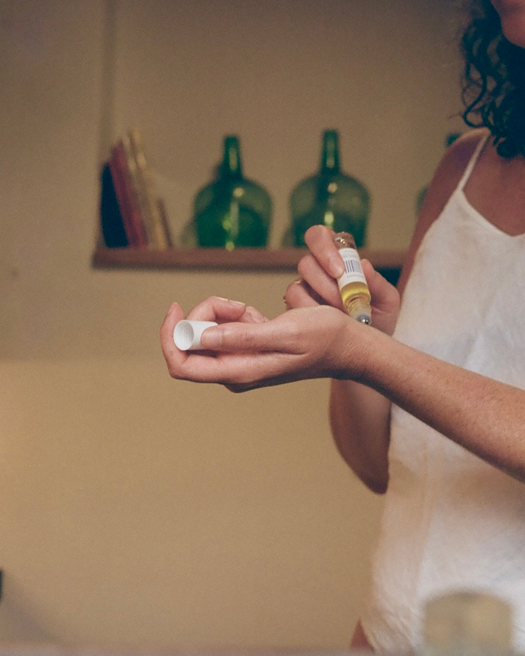 Liberally apply to pulse points (wrist, behind the earlobes, inner elbows).